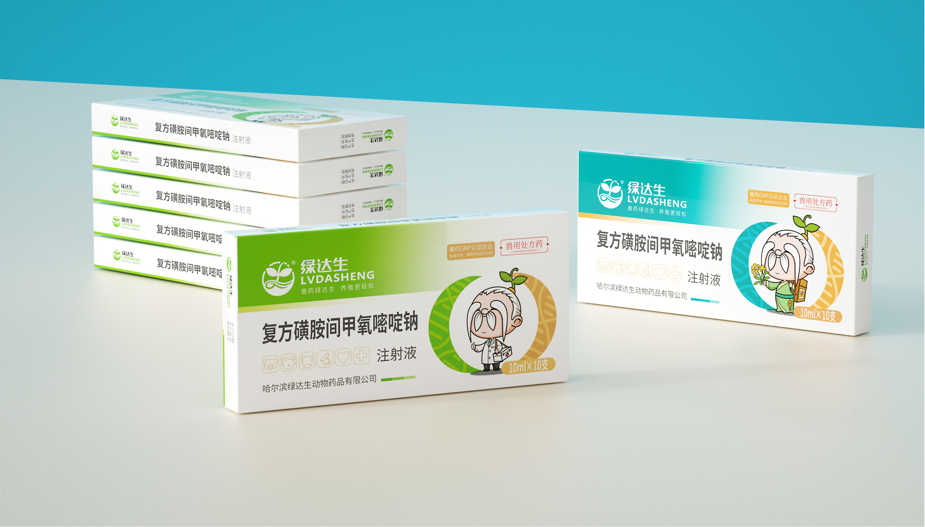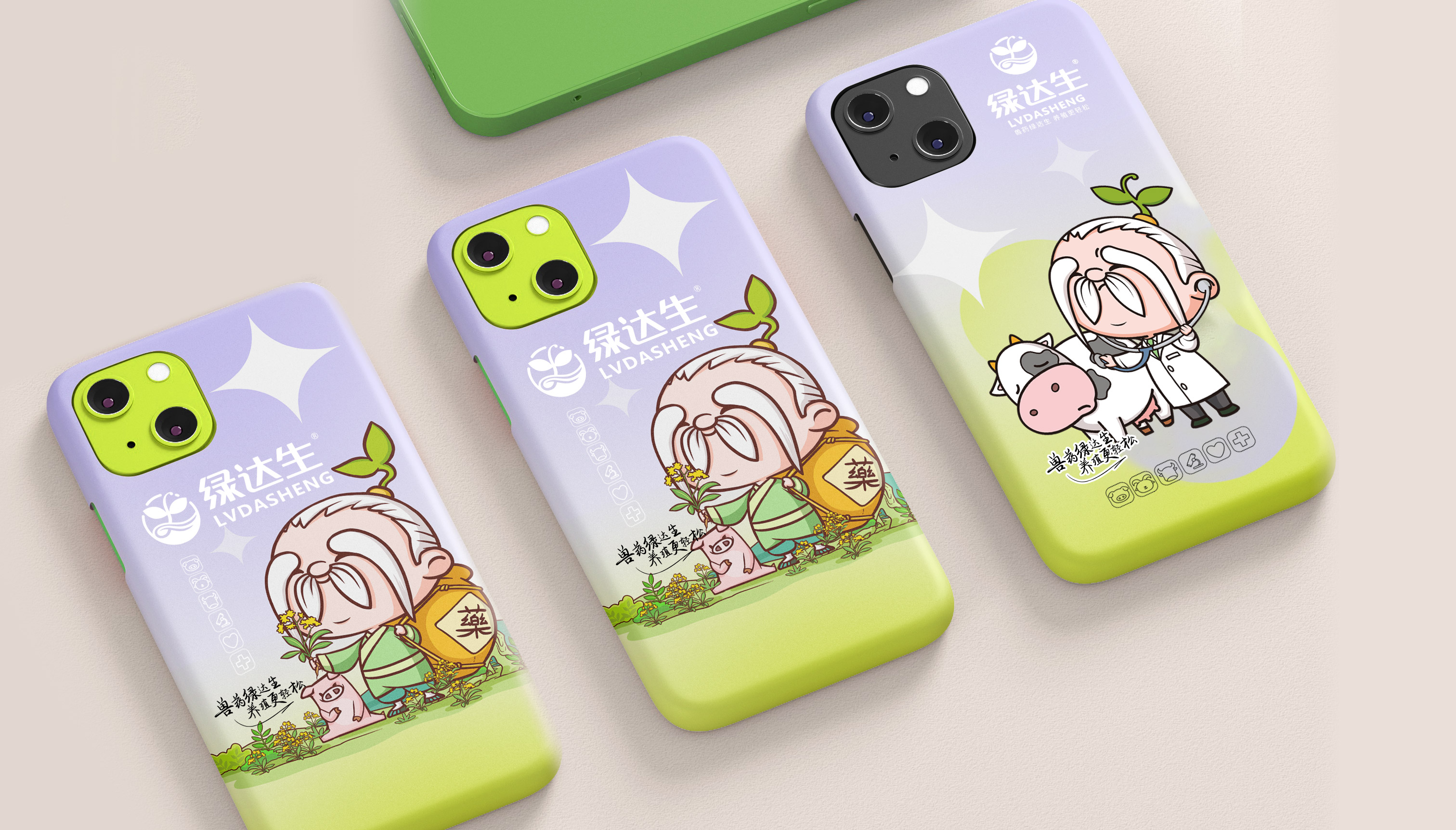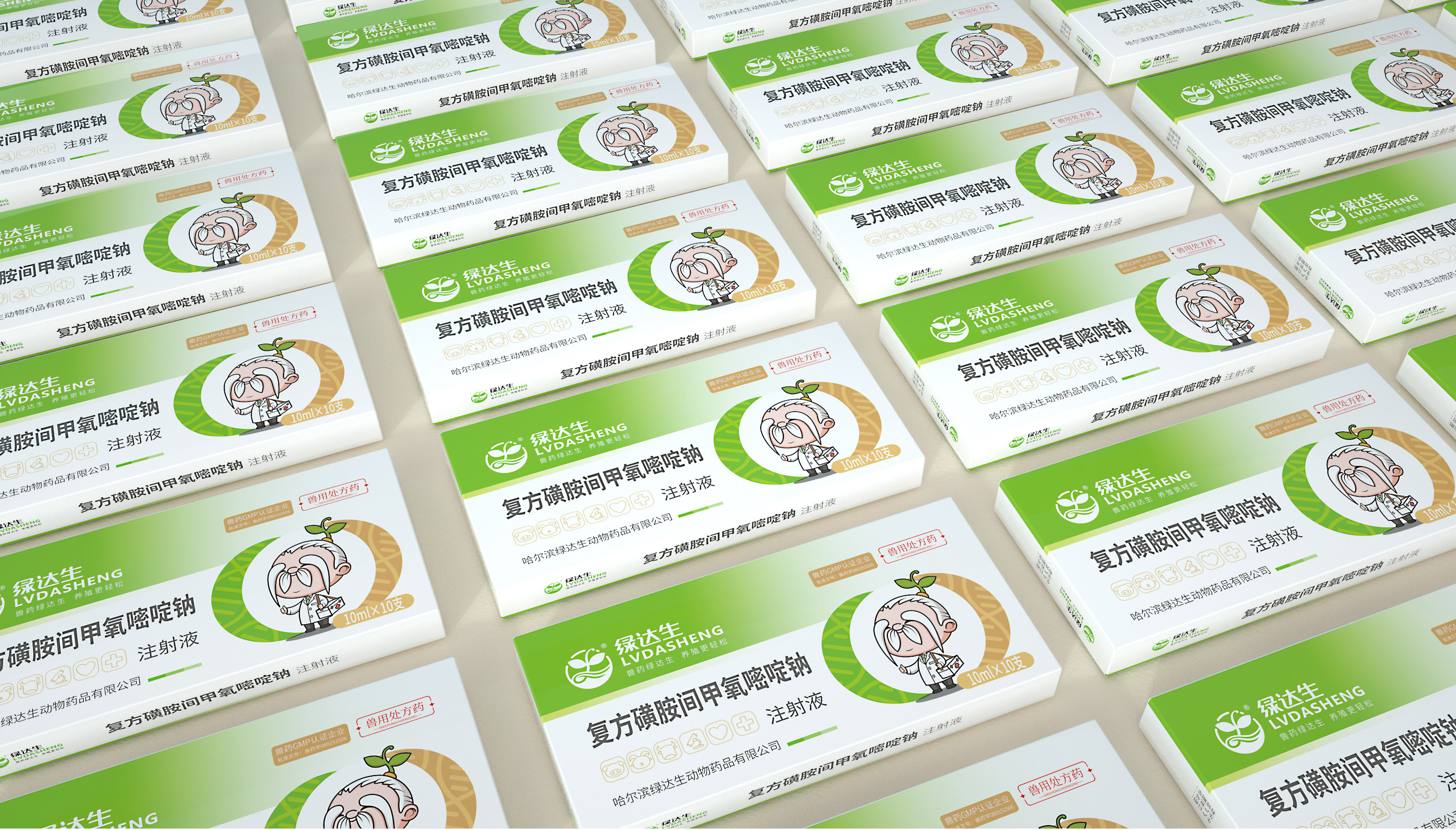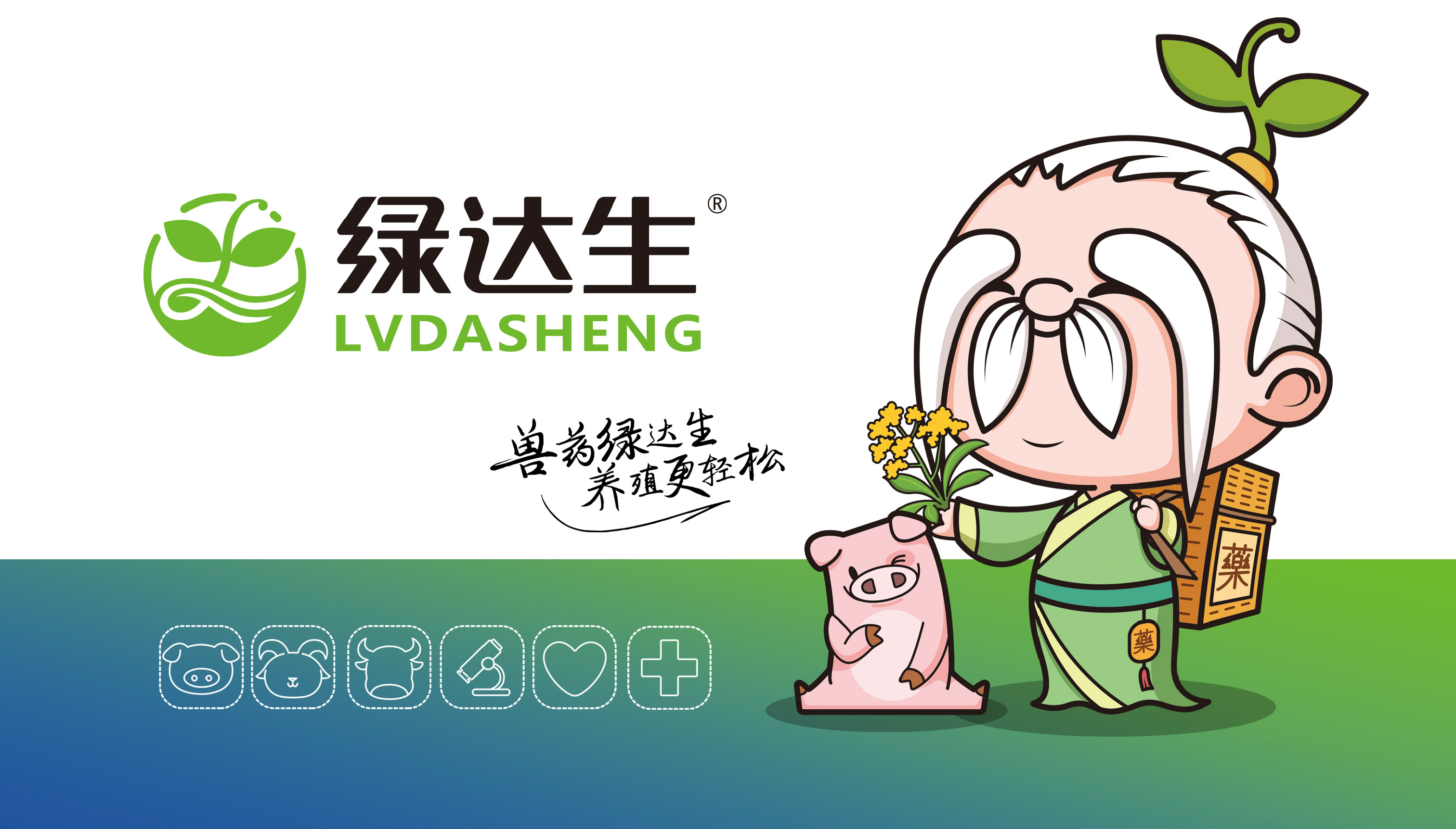 企業(yè)在市場廝殺多年,原有的標志已經(jīng)在大批消費者心中積累了一定的認知資產(chǎn),標志不能大刀闊斧的改動,而是在原有基礎(chǔ)上優(yōu)化逐漸替代原有標志;同時需要明確的是企業(yè)的核心定位和競爭力,需要回答綠達生究竟是誰以及能夠解決的問題。繽策將企業(yè)核心品類的獸藥提出并強化,打造出企業(yè)專屬slogan——獸藥綠達生,養(yǎng)殖更輕松,一舉解決品牌認知和選擇難題;而在視覺傳播上,選擇時下流行的IP能夠幫助消費者快速辨別和認知品牌,同時也將于市場同類競品相互區(qū)別,進而脫穎而出,根據(jù)品牌獸藥的行業(yè)特性,將品牌IP設(shè)定為有草藥精靈幻化而成的道骨仙風的老中醫(yī),形象獨特可愛,同時融入傳統(tǒng)中醫(yī)元素,打造讓國人更有共鳴的形象,并一以貫之的落實在包裝及延展上。