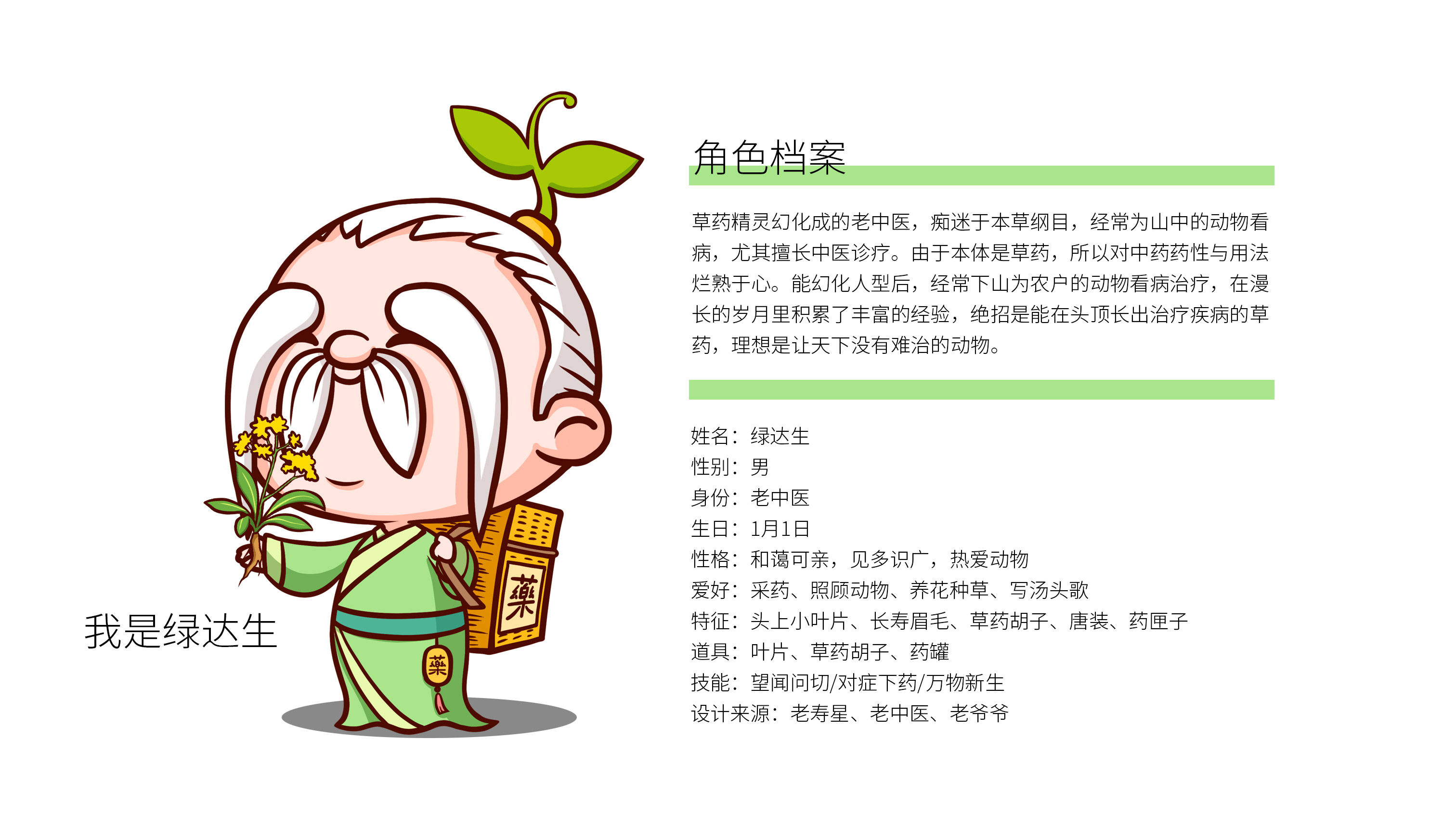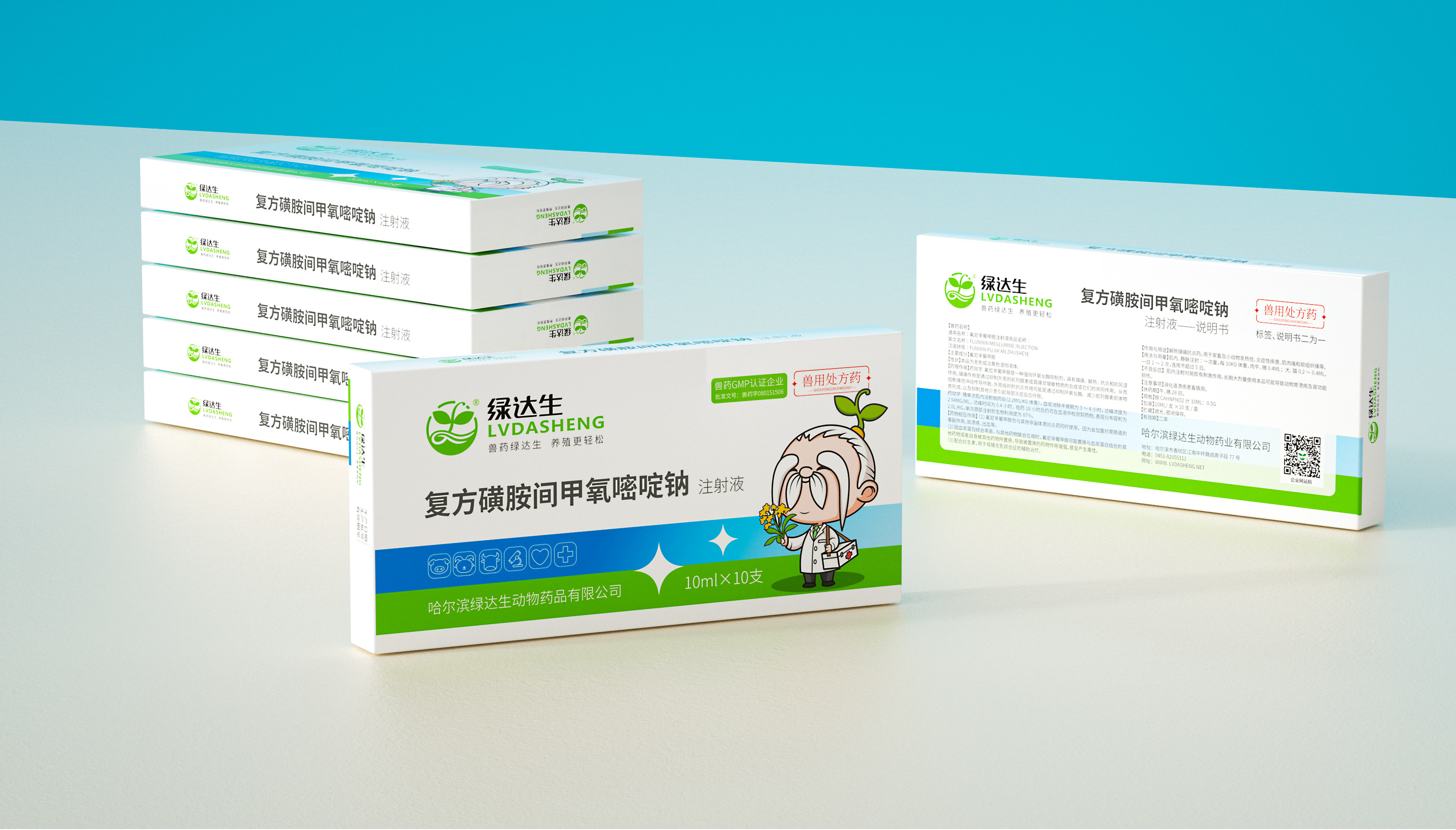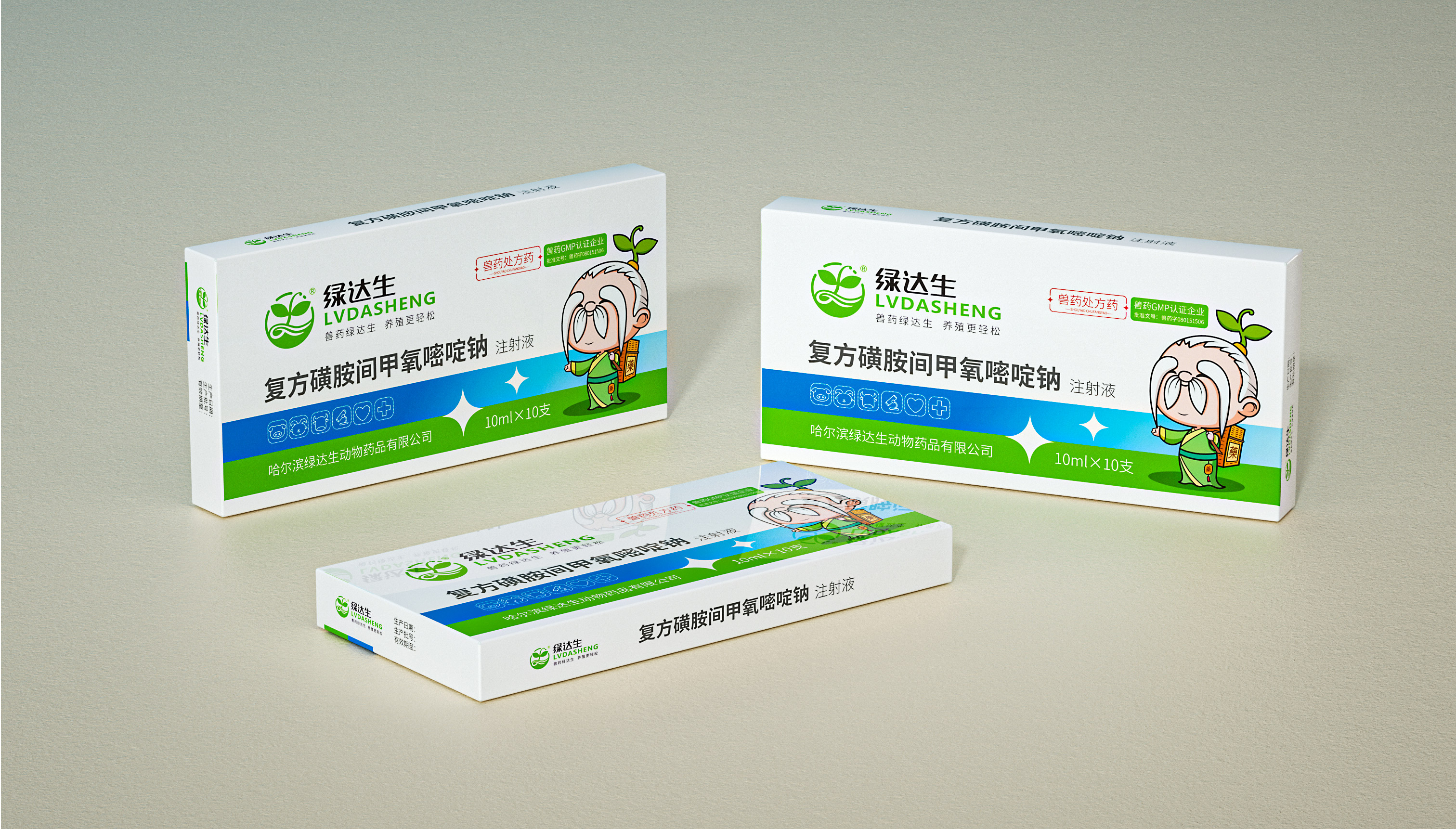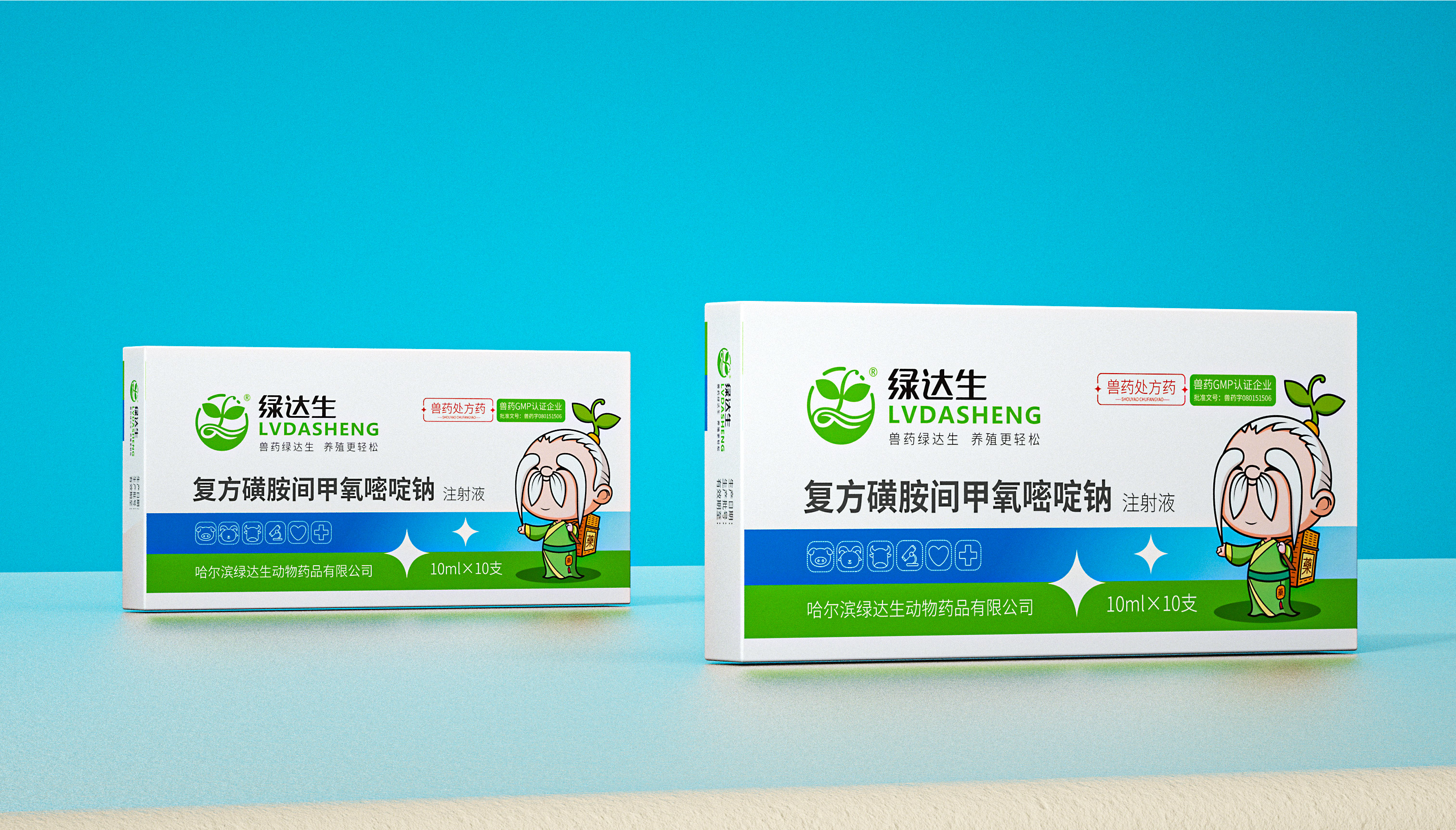 企業(yè)在市場廝殺多年,原有的標志已經(jīng)在大批消費者心中積累了一定的認知資產(chǎn),標志不能大刀闊斧的改動,而是在原有基礎(chǔ)上優(yōu)化逐漸替代原有標志;同時需要明確的是企業(yè)的核心定位和競爭力,需要回答綠達生究竟是誰以及能夠解決的問題。繽策將企業(yè)核心品類的獸藥提出并強化,打造出企業(yè)專屬slogan——獸藥綠達生,養(yǎng)殖更輕松,一舉解決品牌認知和選擇難題;而在視覺傳播上,選擇時下流行的IP能夠幫助消費者快速辨別和認知品牌,同時也將于市場同類競品相互區(qū)別,進而脫穎而出,根據(jù)品牌獸藥的行業(yè)特性,將品牌IP設(shè)定為有草藥精靈幻化而成的道骨仙風的老中醫(yī),形象獨特可愛,同時融入傳統(tǒng)中醫(yī)元素,打造讓國人更有共鳴的形象,并一以貫之的落實在包裝及延展上。