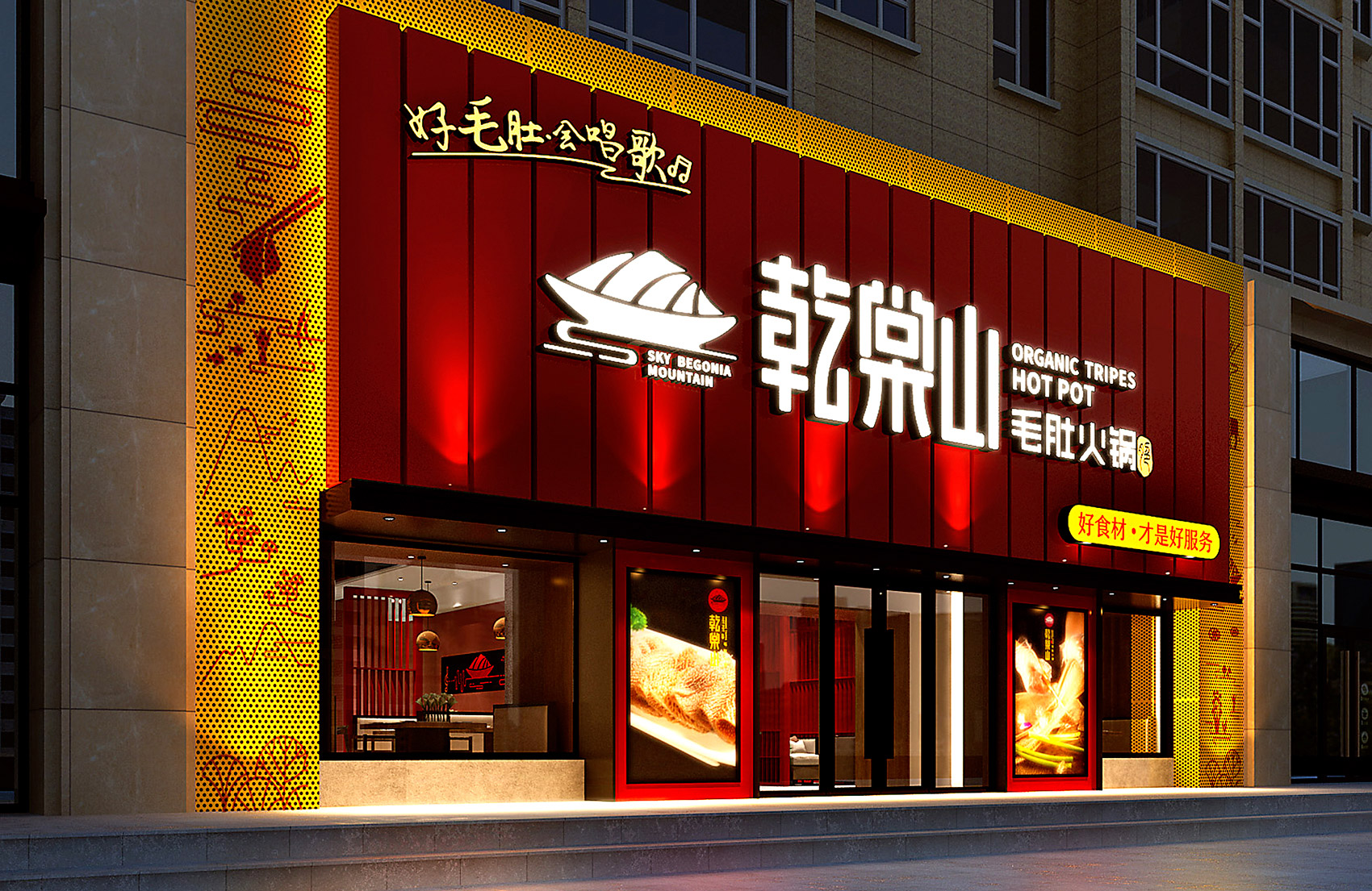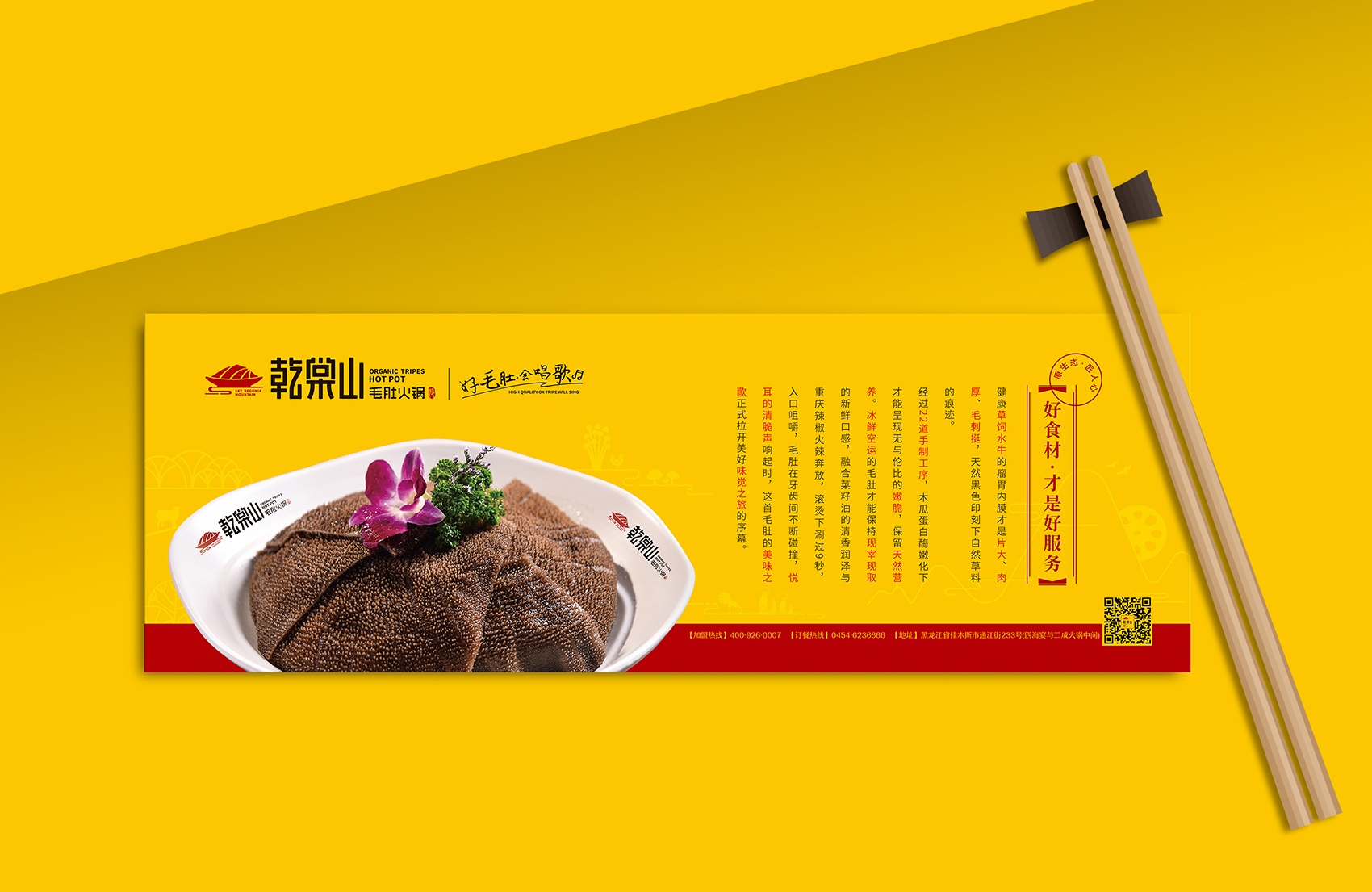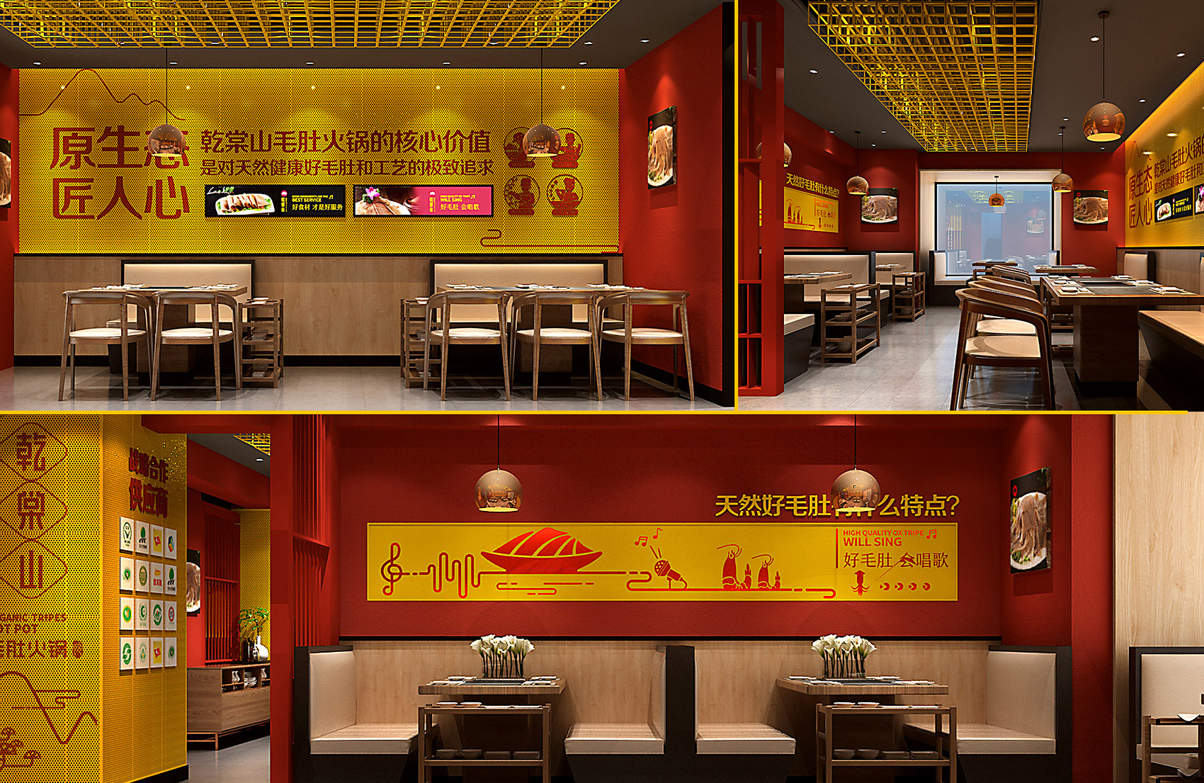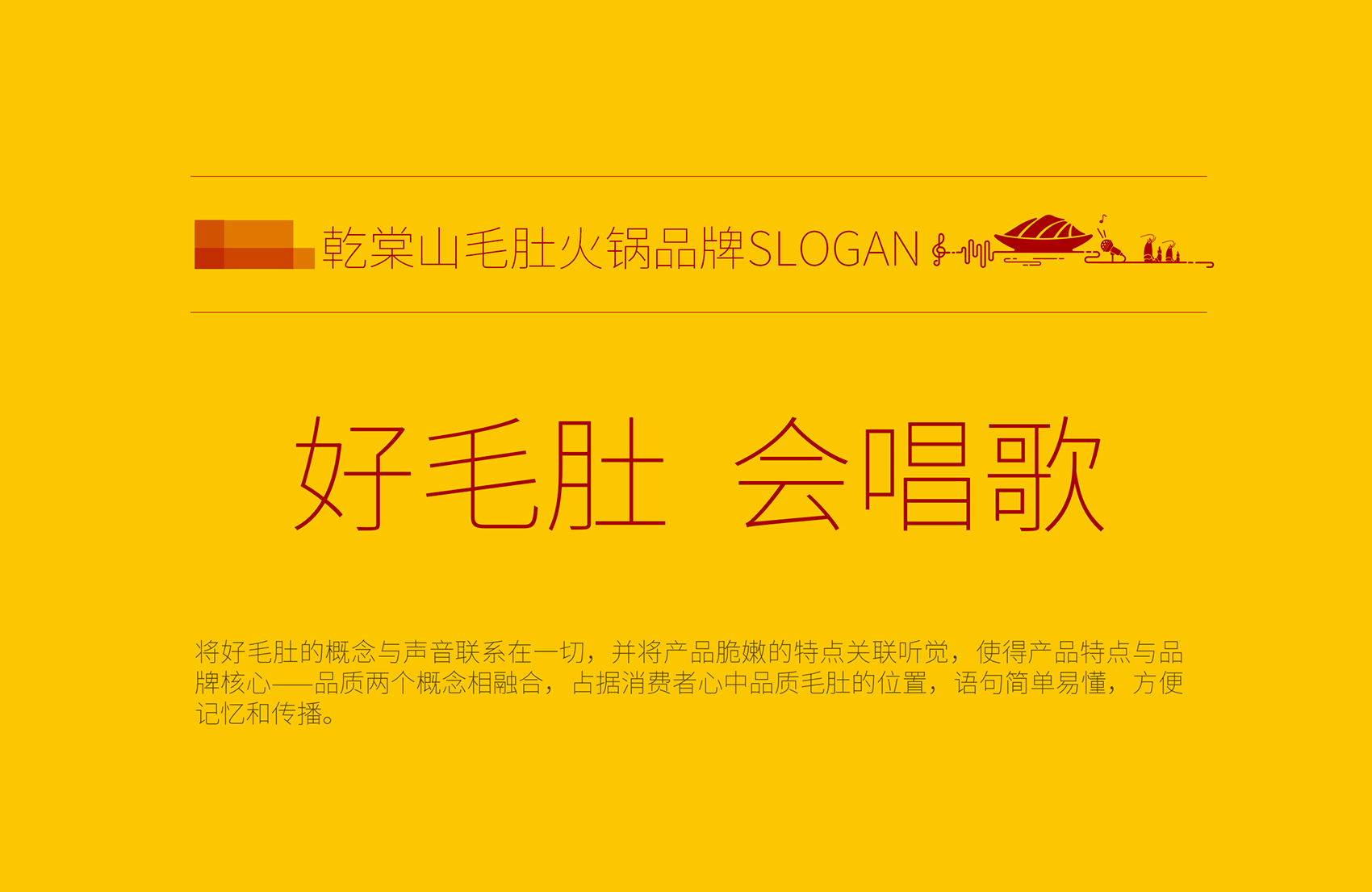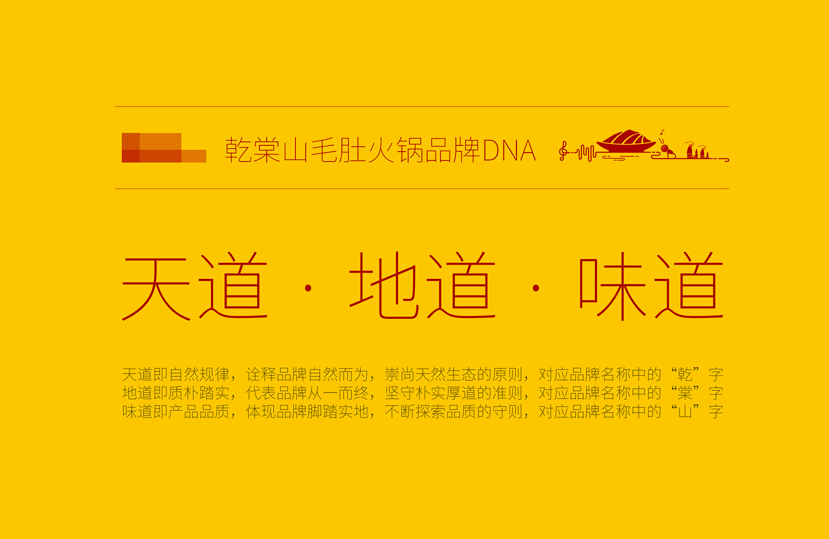 乾棠山毛肚火鍋面臨的競(jìng)爭(zhēng)壓力不但源自火鍋整體市場(chǎng)發(fā)展速度放緩,還源于新品類如何最大程度的突破市場(chǎng),在此基礎(chǔ)上繽策為乾棠山規(guī)劃了從品牌命名、品牌文化、品牌形象及品牌傳播的全案,深入挖掘品牌差異化賣點(diǎn),提煉獨(dú)特文化,并將其融入到品牌形象,植入到品牌空間中,全方位落地執(zhí)行,走出全新的差異化道路。